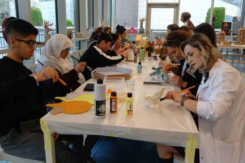 Mersin Şehir Eğitim ve Araştırma Hastanesi fuaye alanında gerçekleştirilen etkinlikte seramik ve ahşap boyama çalışmaları yapıldı. Farklı yaş gruplarından katılımcıların ilgi gösterdiği etkinlikte, hastalar, hasta yakınları ve sağlık çalışanları aynı ortamda bir araya gelerek birlikte üretmenin ve paylaşmanın mutluluğunu yaşadı. Renklerle buluşan çalışmalar, ortaya çıkan ürünlerle birlikte katılımcılara moral ve motivasyon sağladı.