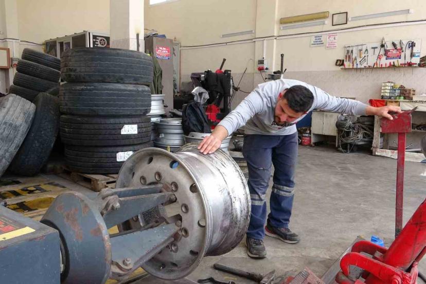 Mersin’de kamyon lastiği şişirirken patladı: O anlar kamerada