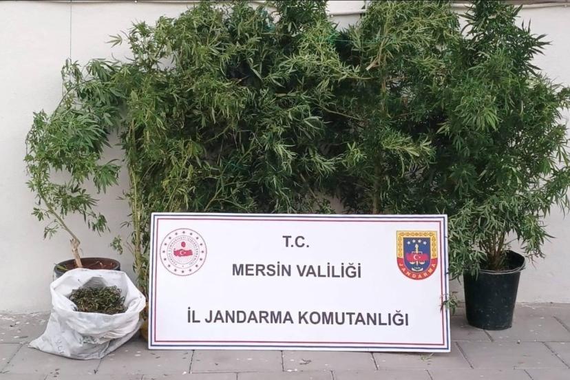 Mersin Erdemli ilçesinde jandarma ekipleri 1 kilo 250 gram esrar ile 25 kök kenevir ele geçirdi,1 şüpheli yakalandı.