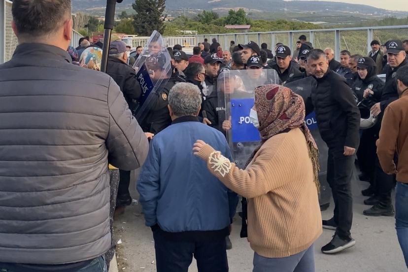 Mersin’de ormanlık alana oluşturulan narenciye bahçelerinin kaldırılması kararına tepki gösteren köylüler, iş makinelerinin önünde oturarak polis ekipleriyle karşı karşıya geldi.