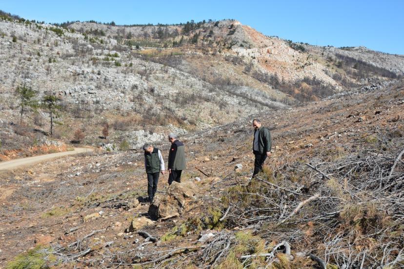 Mersin Orman Bölge Müdür Yardımcısı Mehmet Fulin, Silvikültür Şube Müdürü Ferhat Kaya ve Silifke Orman İşletme Müdürü Muharrem Şahin, yangından zarar gören alanlarda yürütülen çalışmaları yerinde inceledi. Yapılan incelemelerde 0-400 metre rakımlı bölgelerde çimlenmelerin başladığı, orta ve üst rakımlarda ise henüz çimlenmelerin görülmediği tespit edildi.