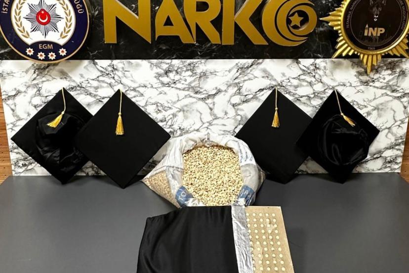 Mezuniyet keplerinin içine gizlenmiş 53 bin 100 uyuşturucu hap ele geçirildi