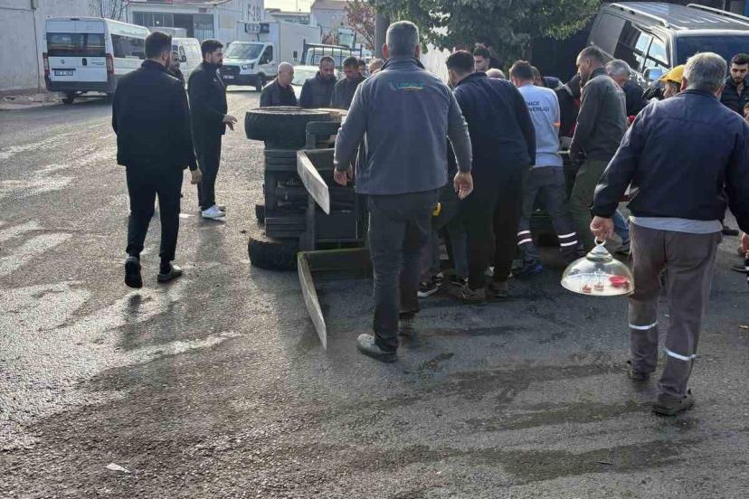 Midibüsün çarpması sonucu devrilen iş makinasının operatörü yaralandı