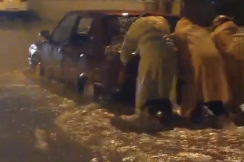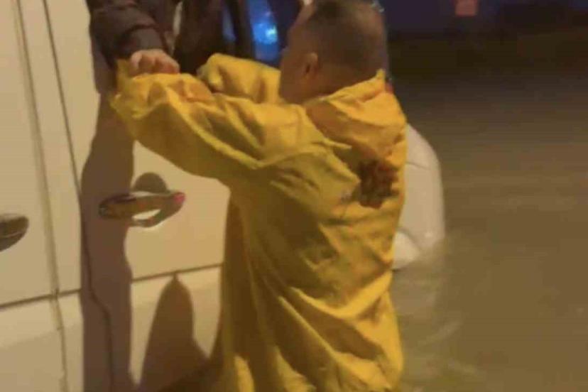 O anlar saniye saniye görüntülenirken ekipler ayrıca yolda kalan bir aracı da sel sularından kurtardı.