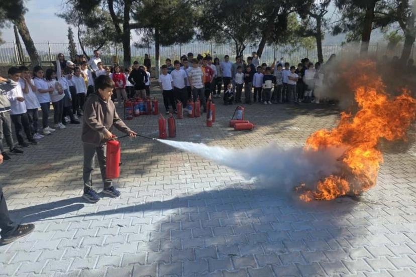 Minik itfaiyeciler yangın güvenliğini öğrendi