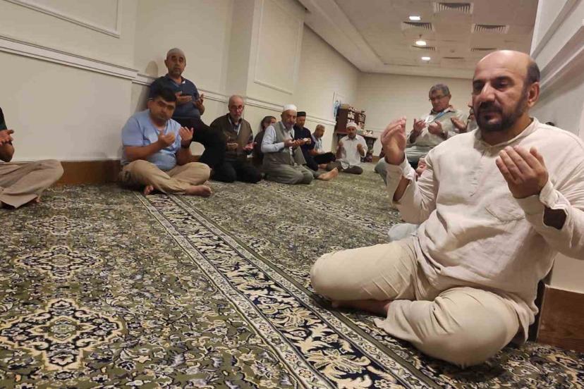 Umre ibadeti için kutsal topraklarda bulunan Türk umreci kafileleri, Miraç kandili dolayısıyla kaldıkları otelin mescidinde Türkiye’den gönderilen ve umreciler tarafından okunan hatimler için toplu dua programı düzenledi.