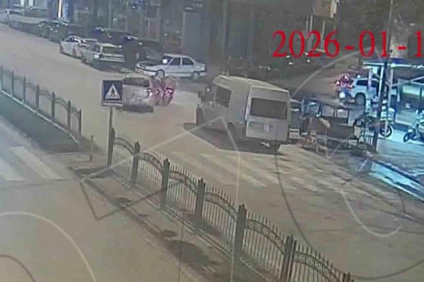 Edinilen bilgiye göre, Mehmet Varinli Caddesi üzerinde Abdulmuttalip Ç.’nin kullandığı otomobile yolun sağına doğru manevra yaptığı sırada kurye Furkan D.’nin sürdüğü motosiklet çarptı. Kurye ve motosikletin savruldukları anlar kameraya yansıdı. Yaralanan kuryenin imdadına çevredekiler yetişti.