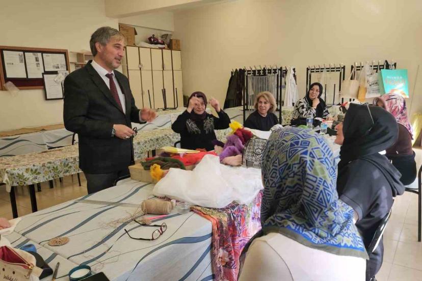 Ardından kurs atölyelerini gezerek kursiyer vatandaşlarla görüşen Milli Eğitim Müdürü Mustafa Yılmaz, yürütülen çalışmalar hakkında bilgi aldı ve yapılan el emeği ürünleri inceledi. Geri dönüşüm malzemelerinden hazırlanan el sanatlarını takdirle karşılayan Yılmaz, konuşmasında aile yapısının önemine, üretim kültürünün sürdürülebilirliğine ve çalışmanın hayatımızdaki değerine dikkat çekti.