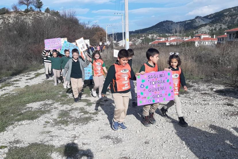 Mudurnu Dumlupınar İlkokulu öğrencileri, öğretmenleri, okul müdürü ile Bolu Abant İzzet Baysal Üniversitesi öğrencileri katıldı. Öğrenciler, gönüllüler ve öğretmenler, 4. Etap TOKİ bölgesinde erozyon farkındalık yürüyüşü yaptı. Yürüyüşte ilkokul öğrencileri, "Sağlıklı toprak, güvenli gıda", "Toprağı korumak sofranı korumaktır" ve "Doğayı koru, yaşamı sürdür" yazılı pankartlar taşıyarak doğal kaynakların korunmasına dikkat çekti.