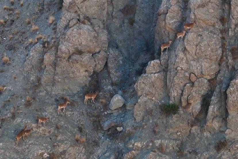 Kemah ilçesi kırsalında gerçekleştirilen çekimlerde, sarp ve ulaşılması güç kayalıklar arasında özgürce dolaşan yaban keçileri, doğal ortamlarında sergiledikleri çevik ve zarif hareketlerle dikkat çekti. Havadan çekilen görüntülerde, yaban keçilerinin sürü halinde hareket ettiği, kayalıklar arasında ustalıkla ilerlediği ve doğal yaşamla uyum içindeki halleri net bir şekilde görüldü. Bu görüntüler, Erzincan’ın yaban hayatı açısından ne denli zengin bir coğrafyaya sahip olduğunu ortaya koydu.