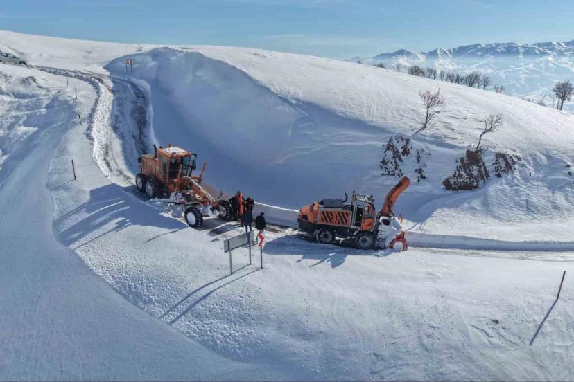 Muş’ta etkili olan yoğun kar yağışı, tipi ve fırtına nedeniyle geçici olarak ulaşıma kapatılan Muş-Kulp karayolu, ekiplerin y...