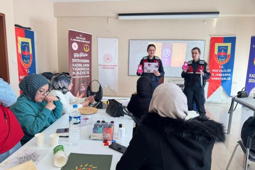 Muş İl Jandarma Komutanlığı ekiplerince, Gençlik ve Spor İl Müdürlüğü bünyesinde çalışmalarını yürüten Muş Gençlik Merkezinde kurs gören kadınlara yönelik KADES uygulaması, 6284 sayılı kanun ile erken yaşta ve zorla evlilik konularında bilgilendirme yapıldı.