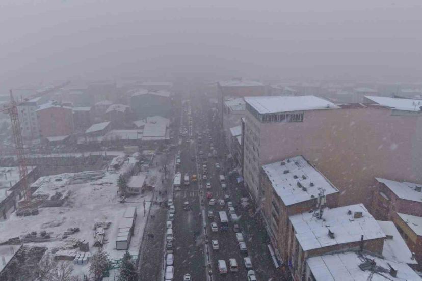 Muş’ta öğle saatlerinde başlayan yoğun kar yağışı kenti beyaza bürüdü.