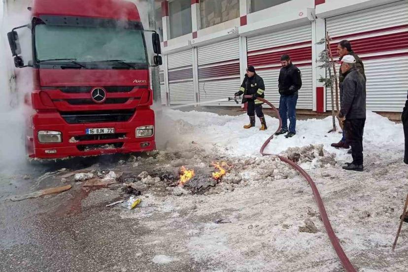 Muş’ta park halindeki bir tırın motor kısmında çıkan yangın, itfaiye ekiplerinin zamanında müdahalesiyle dorsesine sıçramadan söndürüldü.