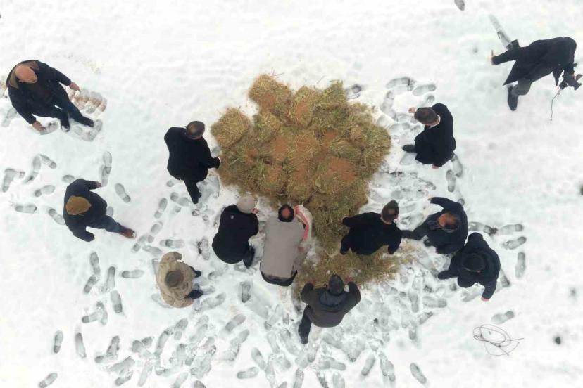 Muş’un Korkut ilçesinde yoğun kar yağışı nedeniyle yiyecek bulmakta zorlanan yaban hayvanları için dağlık alanlara buğday ve ot bırakıldı.