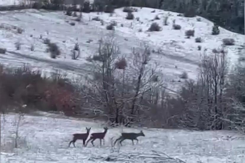 Nadir misafirler kar altında görüntülendi: Refahiye’de kızıl geyik heyecanı