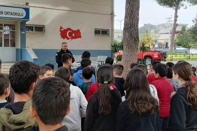 Aydın’ın Nazilli ilçesinde Şehit Celal Güngör Ortaokulu öğrencilerine yönelik yangın bilgilendirme semineri düzenlendi.