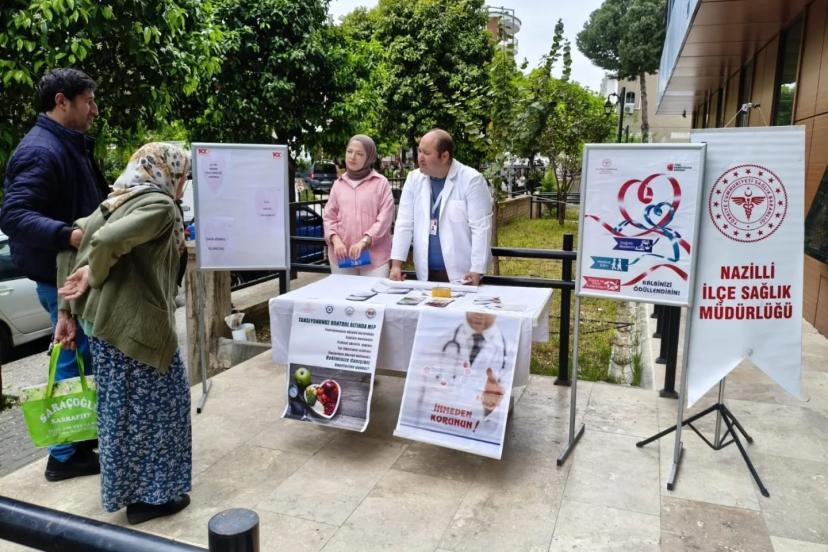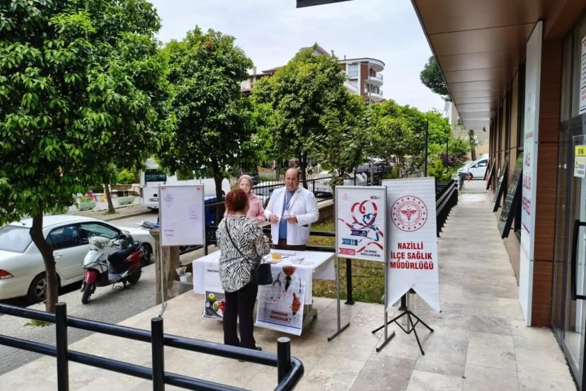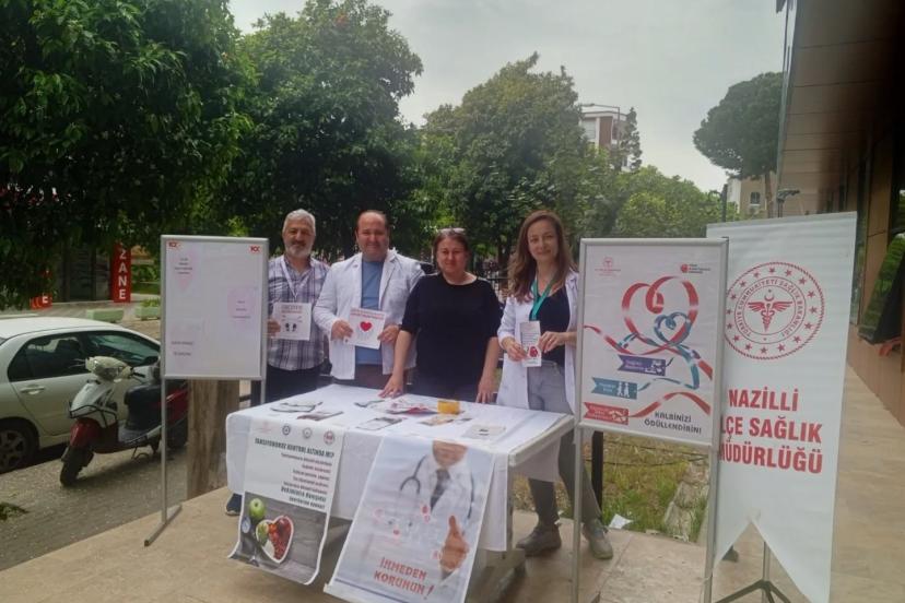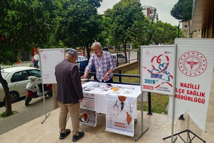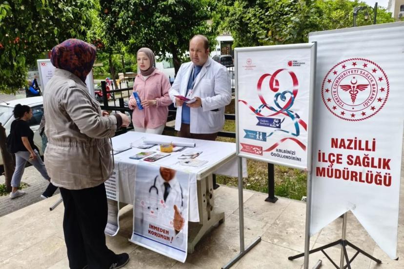 Aydın’ın Nazilli ilçesinde, Kalp Sağlığı Haftası etkinlikleri kapsamında İlçe Sağlık Müdürlüğü tarafından vatandaşlara yönelik bilgilendirme standı kuruldu.