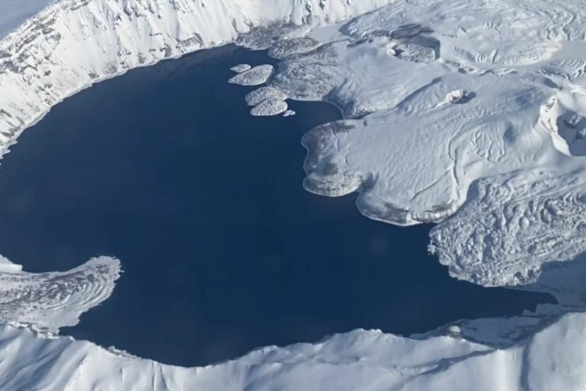 Bitlis’in Ahlat, Güroymak ve Tatvan ilçesi sınırlarında yer alan ve Türkiye’nin en büyük krater gölü olan Nemrut Krater Gölü, uçaktan çekilen kış görüntüleriyle hayran bıraktı.