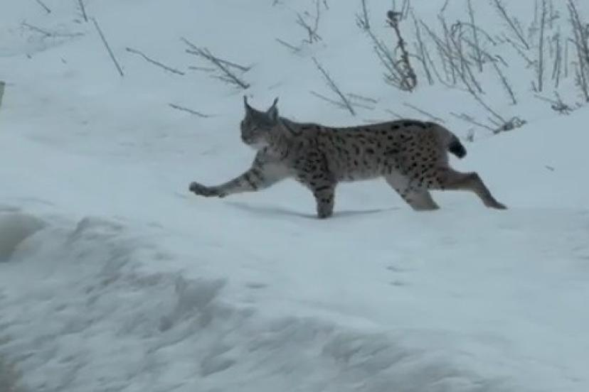 Karlı arazide görülen vaşak, yolun karşısına geçmeye çalıştığı sırada o güzergahtan aracıyla ilerleyen Vedat Özeler’in dikkatini çekti. Vaşağı cep telefonu kamerasıyla kayda alan Özeler’in görüntülerinde, iri cüsseli vaşağın yolun karşı tarafına geçtiği görülüyor.