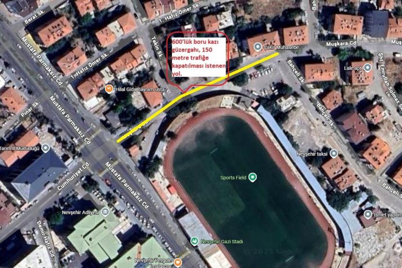 Gerçekleştirilecek altyapı çalışmaları kapsamında ilimiz Nevşehir Merkez Bahçelievler Mahallesi sınırları içerisinde bulunan Muşkara Caddesi ile Bahçeli Sokak bu günden itibaren 15 gün süreyle araç trafiğine kapatıldı. Nevşehir Belediyesi tarafından vatandaşlarımızın mağduriyet yaşamamaları adına çalışmalar süresince alternatif güzergâhları kullanmaları yönünde açıklama yapıldı.