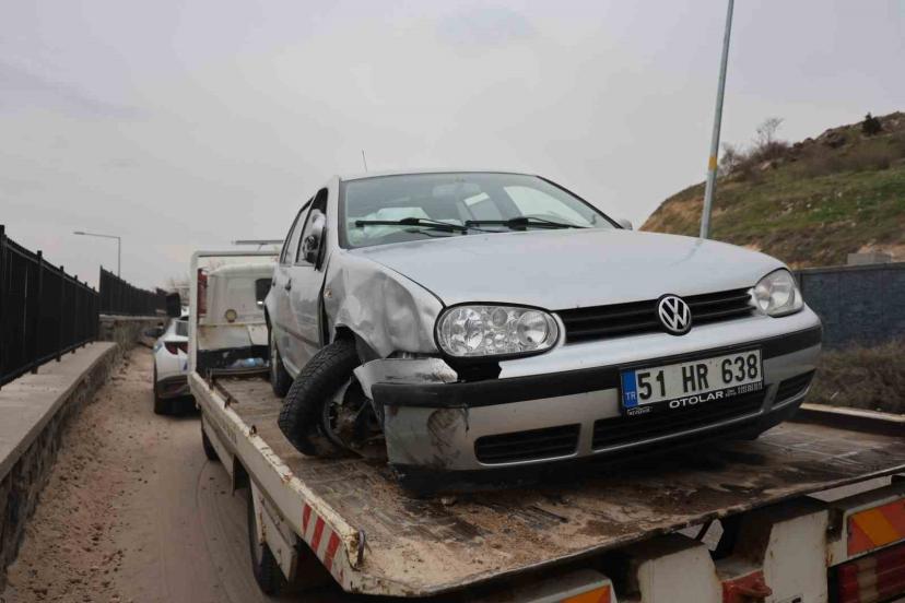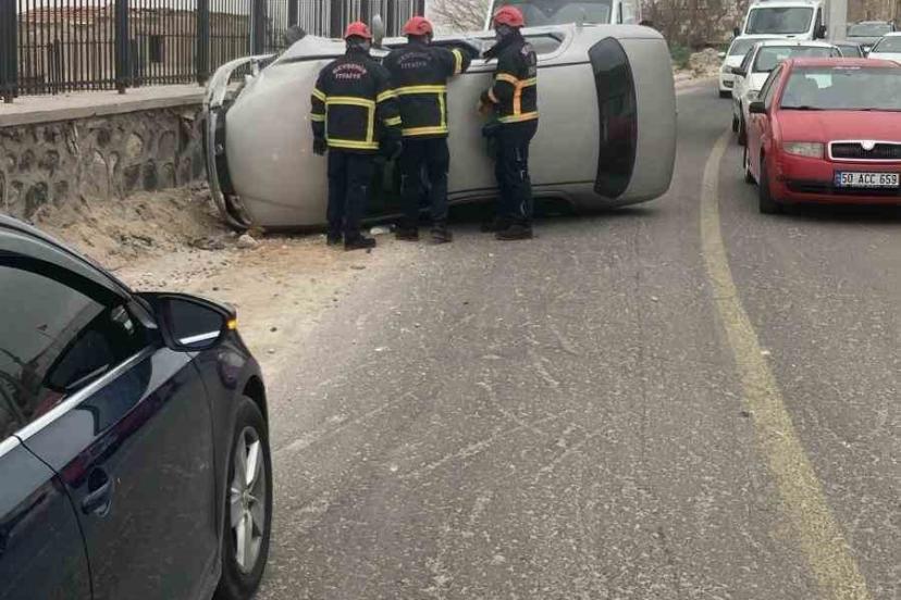 Kaza, Kapucubaşı Mahallesi Yücelyol Sokak üzerinde meydana geldi. Edinilen bilgilere göre, 51 HR 638 plakalı otomobilin sürücüsü Yasin D., seyir halindeyken önündeki aracı sollamak istedi. Virajda hatalı sollama yapan sürücü, karşıdan gelen araca çarpmamak için manevra yaptığı sırada Adnan İ. idaresindeki 50 AEN 972 plakalı araca çarptı. Çarpmanın etkisiyle savrulan araç yol kenarındaki beton bariyerlere çarparak yan yattı. Kazada araç içerisinde bulunan sürücü hafif yaralandı. İhbar üzerine olay yerine sağlık, polis ve itfaiye ekipleri sevk edildi. Araçta sıkışan yaralı, itfaiye ekiplerinin çalışmasıyla bulunduğu yerden çıkarılarak sağlık ekiplerine teslim edildi.