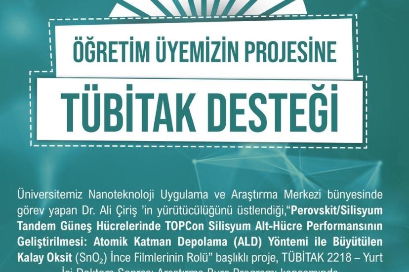 "Perovskit/Silisyum Tandem Güneş Hücrelerinde TOPCon Silisyum Alt-Hücre Performansının Geliştirilmesi: Atomik Katman Depolama (ALD) Yöntemi ile Büyütülen Kalay Oksit (SnO) İnce Filmlerinin Rolü" başlıklı proje, güneş enerjisi teknolojileri alanında yenilikçi çalışmalar yürütmeyi hedefliyor.