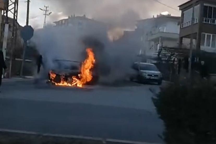Niğde’de park halindeki otomobil alev alev yandı