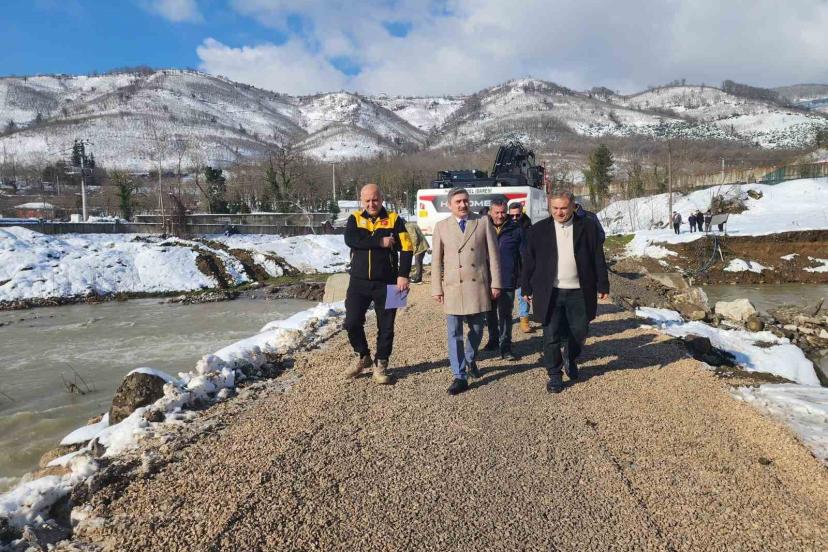 İl Özel İdaresi Genel Sekreteri Nuri Çelik ile Yol ve Ulaşım Hizmetleri Müdürü Savaş Tekin köprü yapım çalışmasını inceleyerek görev yapan ekiplerden çalışmaların son durumu hakkında bilgi aldı. Geçici geçişin güvenli ve kontrollü bir şekilde sağlanabilmesi amacıyla yürütülen çalışmalarda; 9 metre boyunda ve 3 metre çapında boru ile 2,4 metre çapında ve 5 metre boyunda 2 adet boru kullanılarak uygulama gerçekleştiriliyor. Yapılan çalışmalarla birlikte, ulaşımın kesintisiz devam etmesi ve vatandaşların günlük yaşamlarının olumsuz etkilenmemesi hedefleniyor.