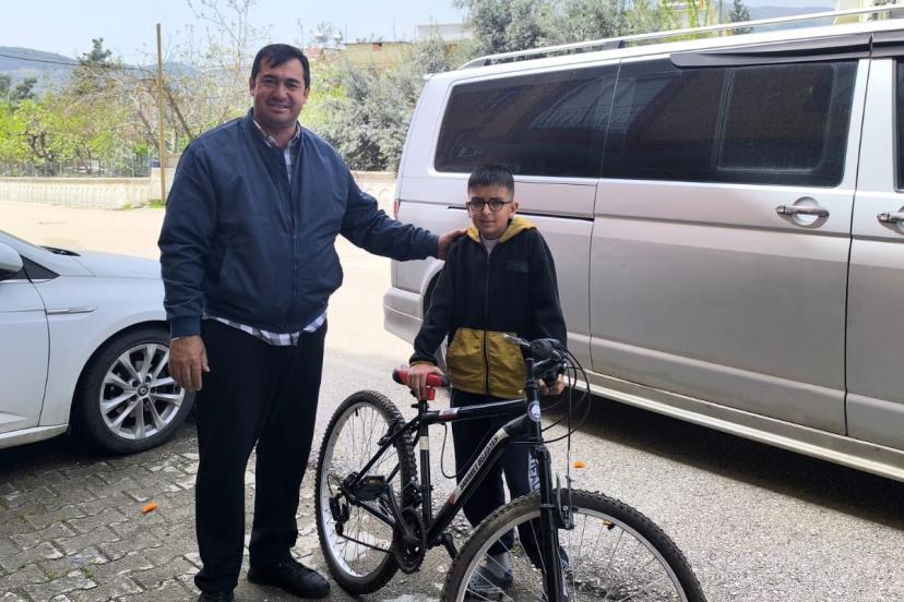 Genç kızın, bisikleti bir depremzede çocuğa hediye etmek istediğini belirtmesi üzerine ailesi bisikleti 6 Şubat 2023’te meydana gelen Kahramanmaraş merkezli depremlerden en çok etkilenen Nurdağı ilçesinin kırsal Gökçedere Mahallesi Muhtarı Ümit Kaçakçı’ya teslim etti.