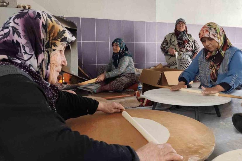 Geceden 25 kilogram un ile hamuru hazırladıklarını anlatan Nebahat Sabancı ise, "Sabah bahçede bir araya geliyoruz ve aramızda iş bölümünü yapıp hazırlanan hamurdan parçalara ayırarak yufkaları açmaya başlıyoruz. Hepimiz aynı anda açamıyoruz, aynı anda 6-7 kişi yufka açıyor 1 kişi de odun ateşinde hazırlanan yufkaları pişiriyor. Bir kişi de kutulara istif ediyor. Yorulan olursa kenarda bekleyen ile yer değiştiriyoruz. Kenarda bekleyenler aynı zamanda çay, kahve ikramları da hazırlama görevini üstlenmiş oluyor" diye konuştu.