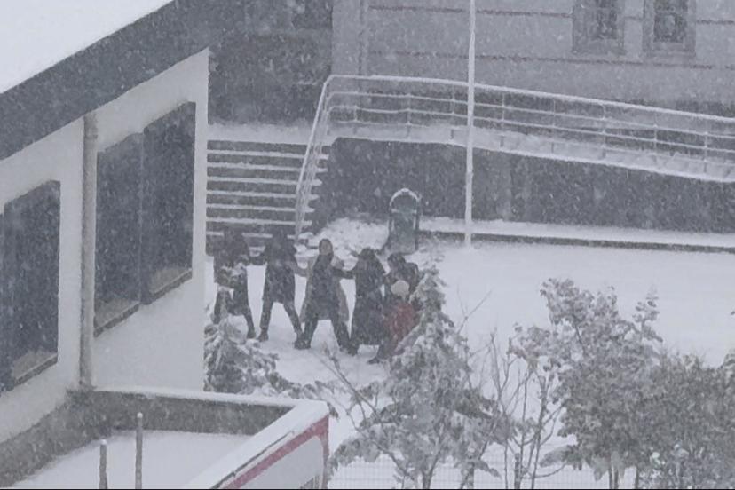 Öğrenciler karın keyfini okul hoparlöründen çalınan oyun havasıyla çıkardı