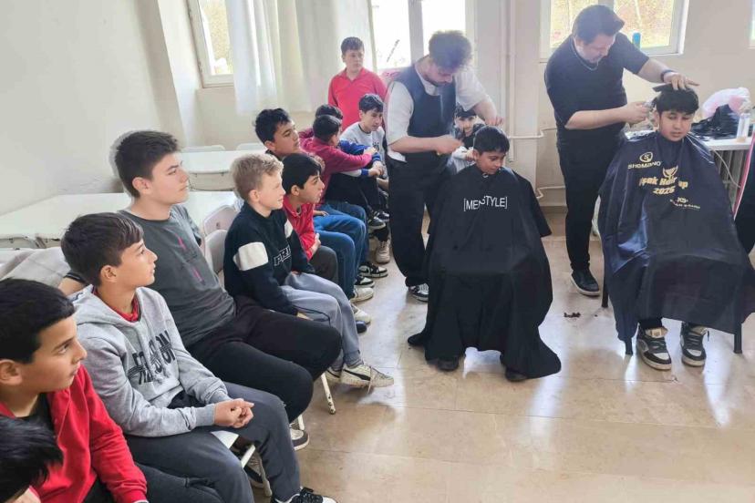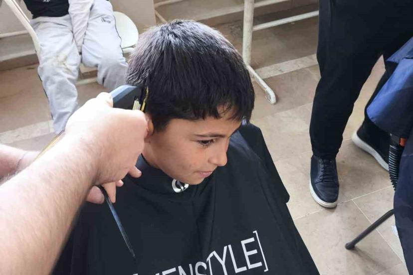 Minik öğrenciler ise yeni saç stilleriyle bayrama girecek olmanın mutluluğunu yaşarken, hediyelerle de büyük sevinç yaşadı.