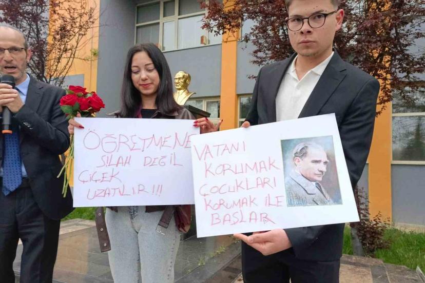 Bursa Osmangazi Şehit Erol Olçok Turizm Mesleki ve Teknik Anadolu Lisesi öğrencileri Şanlıurfa ve Kahramanmaraş’ta yaşanan okul baskınlarından sonra farkındalık oluşturmak adına anlamlı bir etkinliğe imza attı. Sabah okula gelen öğretmenlerini çiçeklerle ve pankartlarla karşıladı.
