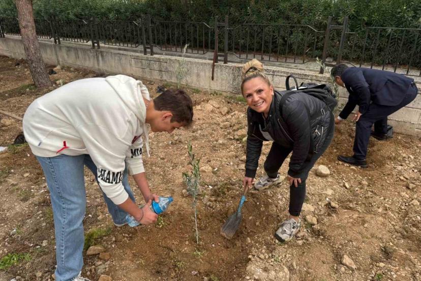 Okul bahçesine 60 zeytin fidanı dikildi