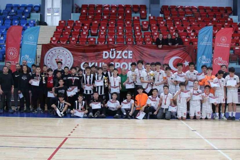 Düzce’de düzenlenen futsal turnuvasında yıldız kızlar ve yıldız erkekler kategorilerinde çok sayıda okul şampiyonluk için ter döktü. Büyük bir heyecana sahne olan Yıldız Kızlar kategorisinde Bilge Ortaokulu birinci olurken, Anadolu Kalkınma Vakfı Ortaokulu ikinci, Hamit Şerifoğlu Ortaokulu üçüncü sırayı aldı.
