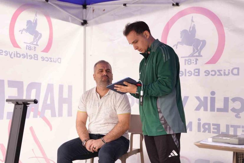 Düzce Belediyesi Gençlik ve Spor Hizmetleri Müdürlüğü’nün başlattığı "Ölç, Fark Et, Hareket Et" kampanyası kapsamında Millet Bahçesi’nde ücretsiz vücut analizleri yapılıyor. Vatandaşlar hem spor tesisleri hakkında bilgilendiriliyor hem de sağlıklı yaşama teşvik ediliyor.