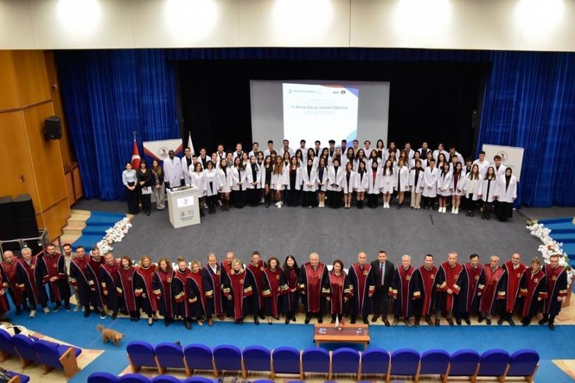 Konuşmaların ardından törenin en anlamlı anı olan beyaz önlük takdimine geçildi. Toplam 66 öğrenci, akademisyenlerin taktığı beyaz önlükleri giyerek mesleğe ilk adımlarını attı.
