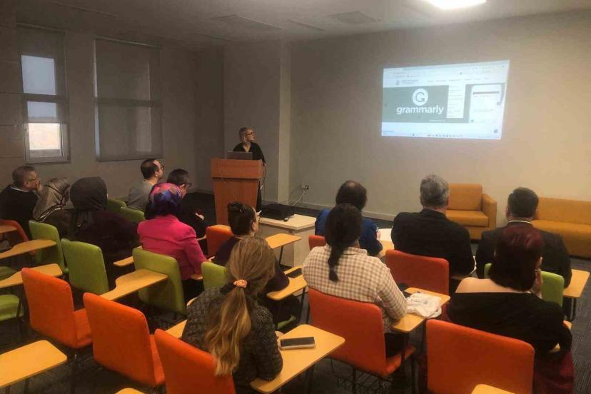 Programın devamında, ’Akademisyen ve Öğrenciyle İletişim’ eğitimi, Kullanıcı Hizmetleri Akademik Danışmanı Öğr. Gör. İbrahim Ethem Olukcuoğlu tarafından gerçekleştirildi. Bu bölümde, akademisyen ve öğrenci profilleri, iletişim biçimleri ve kullanıcı karakter analizleri üzerinden kütüphane hizmetlerinin daha etkili sunulmasına yönelik yaklaşımlar paylaşıldı.