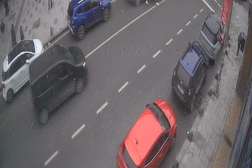 Kaza anı ve yaşanan kovalamaca çevrede bulunan bir iş yerinin güvenlik kamerası tarafından kaydedildi. Görüntülerde motosikletlinin ön kaldırdığı, park halindeki araca çarptığı, yolcunun yere düştüğü ve ardından motosikletlinin kaçtığı anlar net şekilde görüldü.