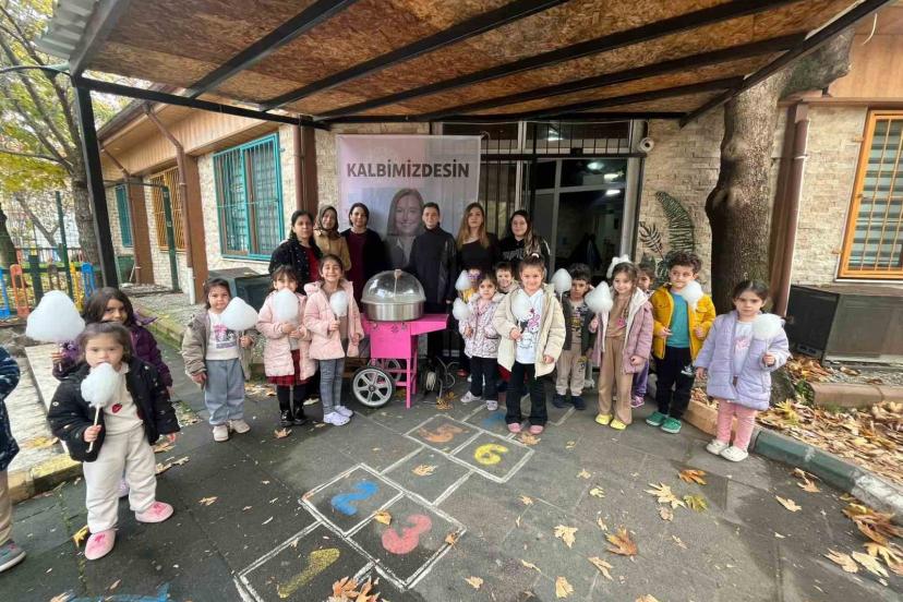 Yunusemre Belediyesi Kaynak Anaokulu öğretmenleri, merhum Manisa Büyükşehir Belediye Başkanı Ferdi Zeyrek ve merhume Şehzadeler Belediye Başkanı Gülşah Durbay’ı dualarla anarak, çocuklara okul önünde pamuk şeker hayrında bulundu.