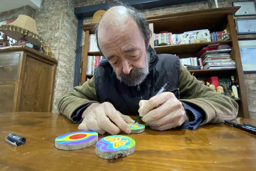 Eskişehir’de eskiden karikatürcü olan ve hala severek çizim yapmaya devam eden 60 yaşındaki Furkan Tangüner, çini mürekkebi ile üzerine ilginç resimler ve desenler yaptığı süs ürünleri ile kendisine ek gelir kaynağı oluşturdu.