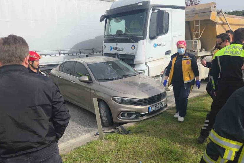 Kaza, saat 10.00 sıralarında Yalova-Bursa kara yolu Orhangazi Yeniköy Kavşağı yakınlarında meydana geldi. Edinilen bilgiye göre, Yalova’dan Orhangazi istikametine doğru gitmekte olan bir hafriyat kamyonu önündeki otomobile çarptı. Kamyon, otomobili yaklaşık 50 metre sürükledikten sonra durabildi. Kazada araçta bulunan 4 kişilik aile büyük şok yaşadı. Kaza nedeniyle kara yolunda trafik tek şeritten sağlandı.