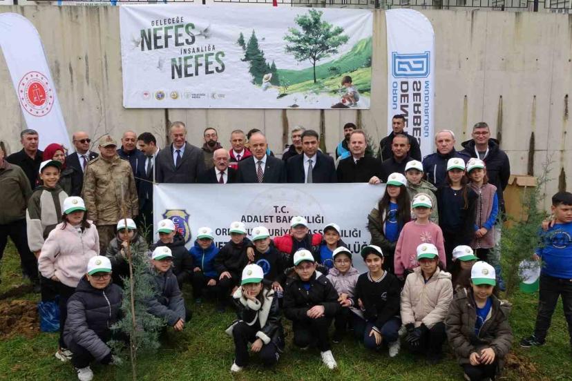 ‘Türkiye’nin Gücü Orman’ temasıyla düzenlenen fidan dikim etkinliği, Altınordu ilçesindeki Şehit Okan Melikoğlu İlkokulu bahçesinde gerçekleştirildi. Burada 10 dekar alanda 100 adet göknar, limon selvi, mavi selvi, sarı çam, karayemiş ve ıhlamur fidanını toprakla buluşturuldu.