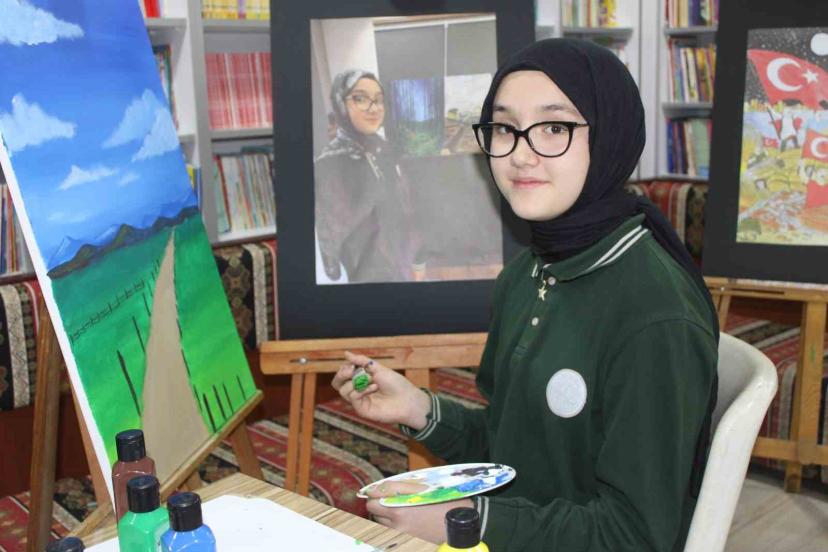Ailesinin, okulunun ve çevresinin yaptığı çalışmalarla kendisine destek çıkarak yanında olduğunu ifade eden Ebrar Tuana Saygı, "Resim yeteneğimi ilkokul yıllarımda öğretmenimle birlikte keşfettik. Erikceli Ortaokulu’na geçtiğimde ise Sevilay ve Hasan öğretmenlerimin rehberliğinde çok kıymetli çalışmalar yaptık. Onların katkıları sayesinde hem yeteneğim gelişti hem de hayal dünyam zenginleşti. Bu süreçte ailem ve çevrem bana her zaman destek oldu; beni engellemek yerine hayallerimi gerçekleştirmem için beni yüreklendirdiler. Bana bu imkânı sundukları ve her zaman yanımda oldukları için aileme çok teşekkür ediyorum" dedi.
