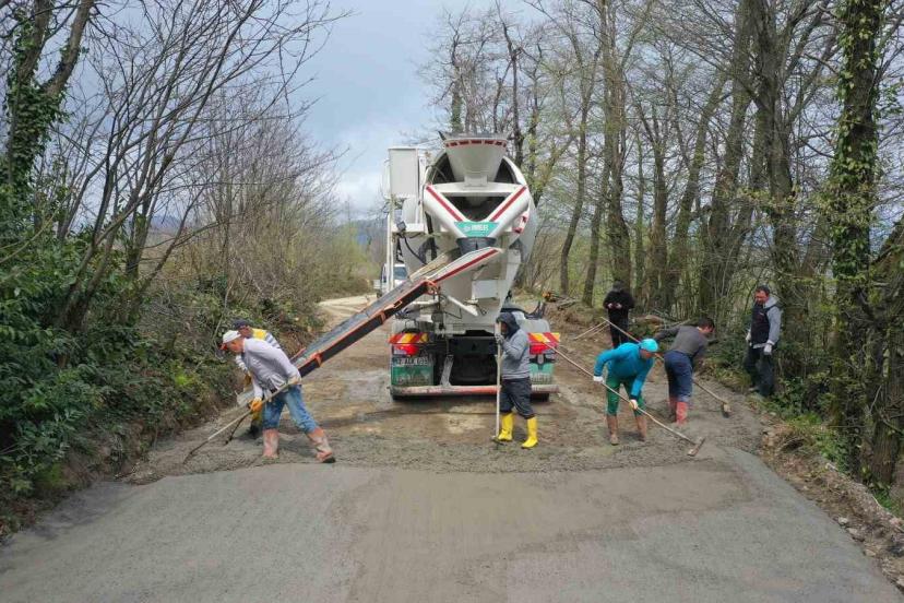 Ordu Büyükşehir Belediyesi tarafından kırsal mahallelerde ulaşım konforunu artırmak için beton yol çalışmaları devam ediyor.