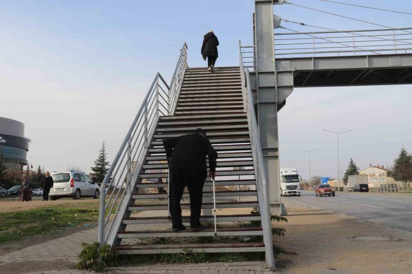 Eskişehir’in Odunpazarı ilçesinde ortasından geçen çevre yolu nedeniyle ikiye bölünen Gündoğdu Mahallesi’nin iki yakasını birbirine bağlayan üst geçidi yaklaşık 1 saatte tırmanan yaşlılar, başta sağlık olmak üzere birçok hizmete ulaşmakta güçlük çekiyor. Engelliler ve çocuklu aileler de yolun karşı tarafına geçmekte büyük zorluk yaşıyor.