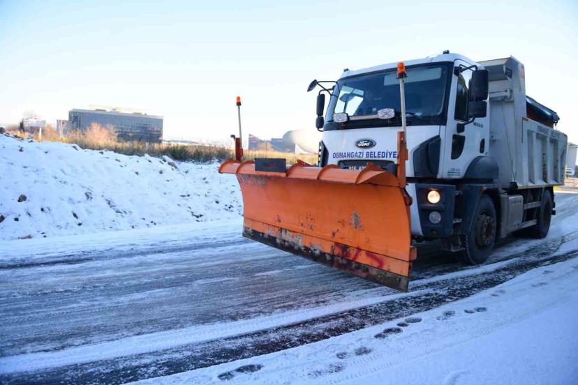 Yeni yılın ilk gününde etkili olan kar yağışıyla birlikte teyakkuzda olan Osmangazi Belediyesi ekipleri, yollardaki buzlanmal...