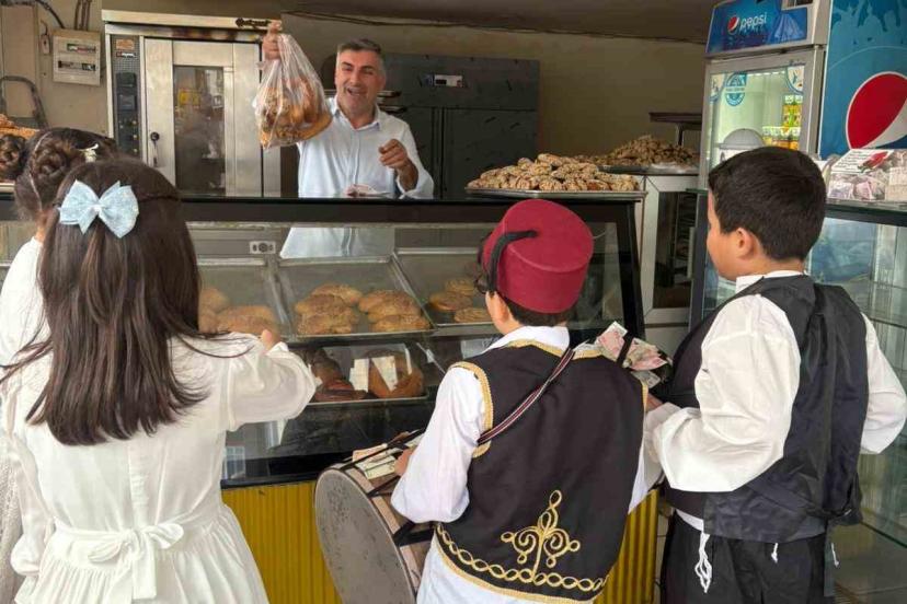 Osmaniye’de ilkokul öğrencileri, geleneksel kıyafetlerle Ramazan manileri okuyarak esnafı ziyaret etti. Gül lokumu dağıtan öğrencilerin topladığı bahşişlerle ihtiyaç sahibi öğrencilere bayramlık alınacağı belirtildi.