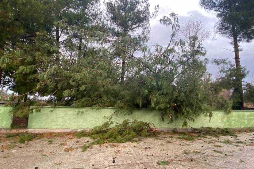 Osmaniye’de şiddetli rüzgar dev ağaçları kökünden söktü